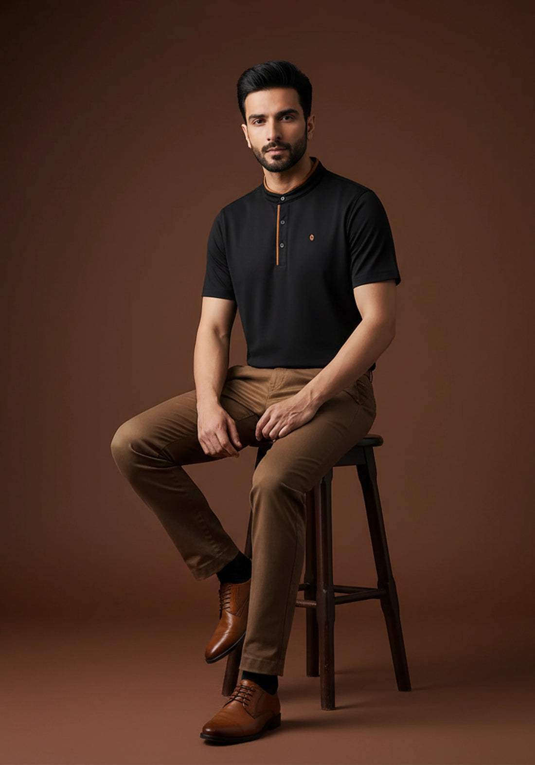 Brown Zipper Polo For Men – Twill Panel Edition