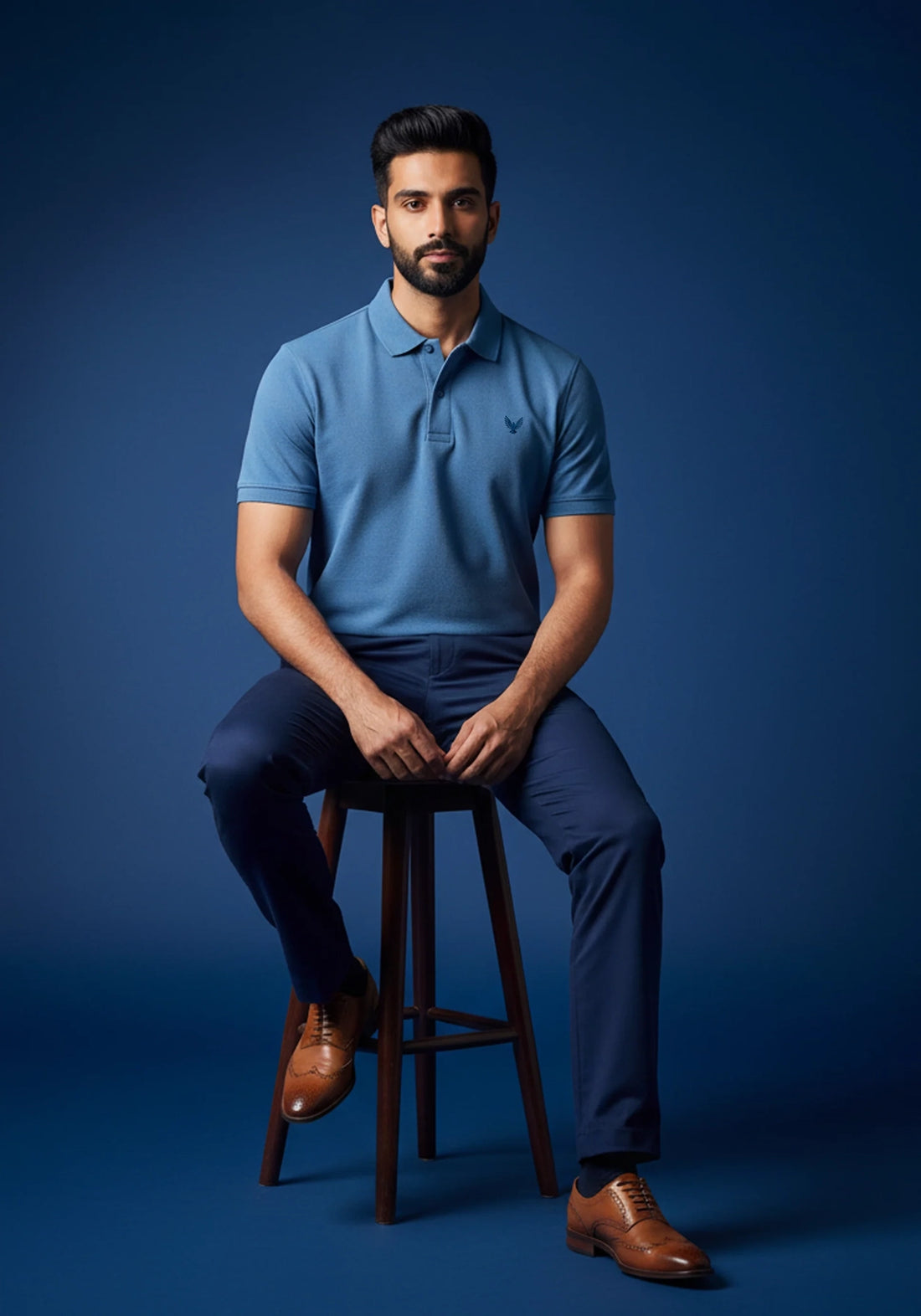 ARIN – The Lucky Dove Blue Polo with Suede Detail