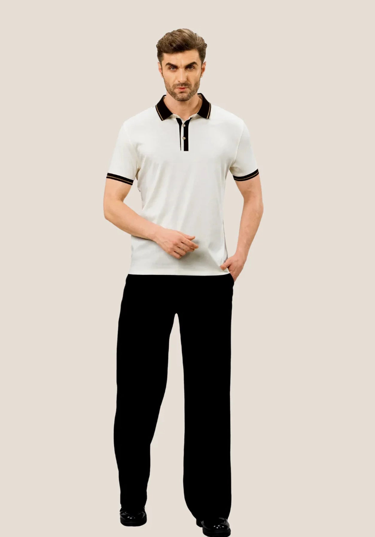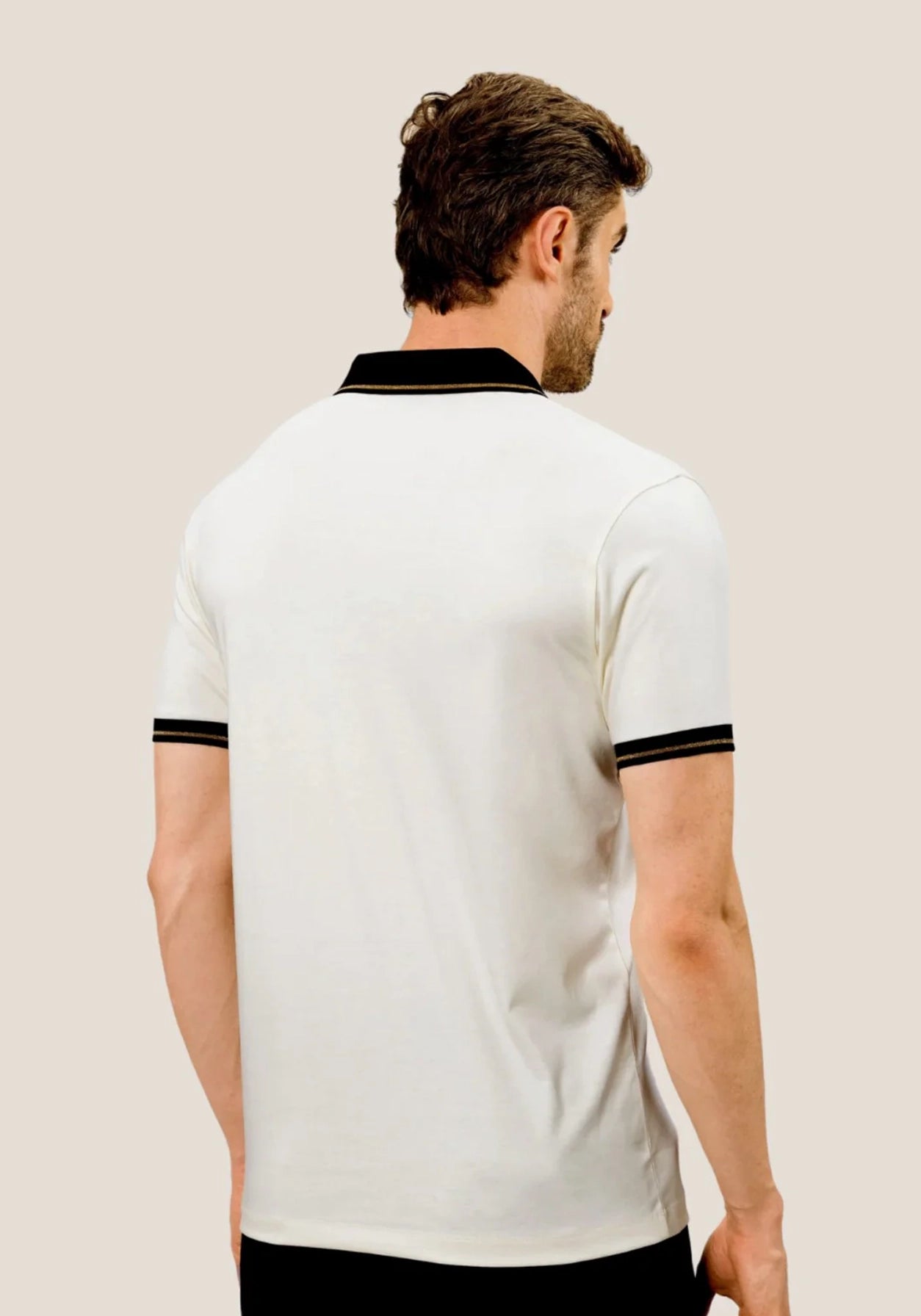 LustraCotton™Crafted with meticulous attention to detail,this polo blends bold black trim, subtle gold accents, and signature hexagonal Outerworld buttons for a luxe touch. With a sleek, regular fit and ultra-soft fabric, it’s the ultimate balance of comfort and style.
