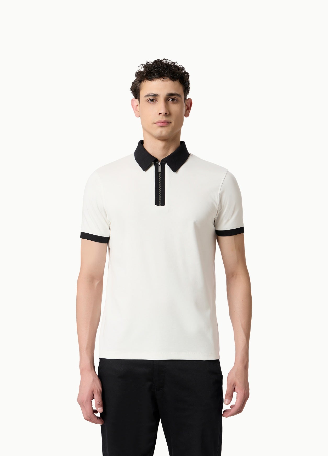 Heading Out. Effortlessly Ready.This is the perfect Outfit . Clean, versatile, and timeless — the White Zipper Polo is a wardrobe essential elevated by craft. Made from Lustrastrong™ cotton, it offers a smooth touch, lightweight breathability, and a refined silhouette that moves with ease.