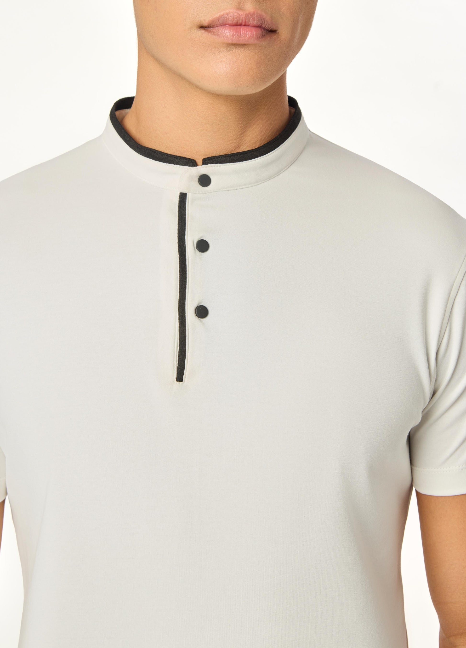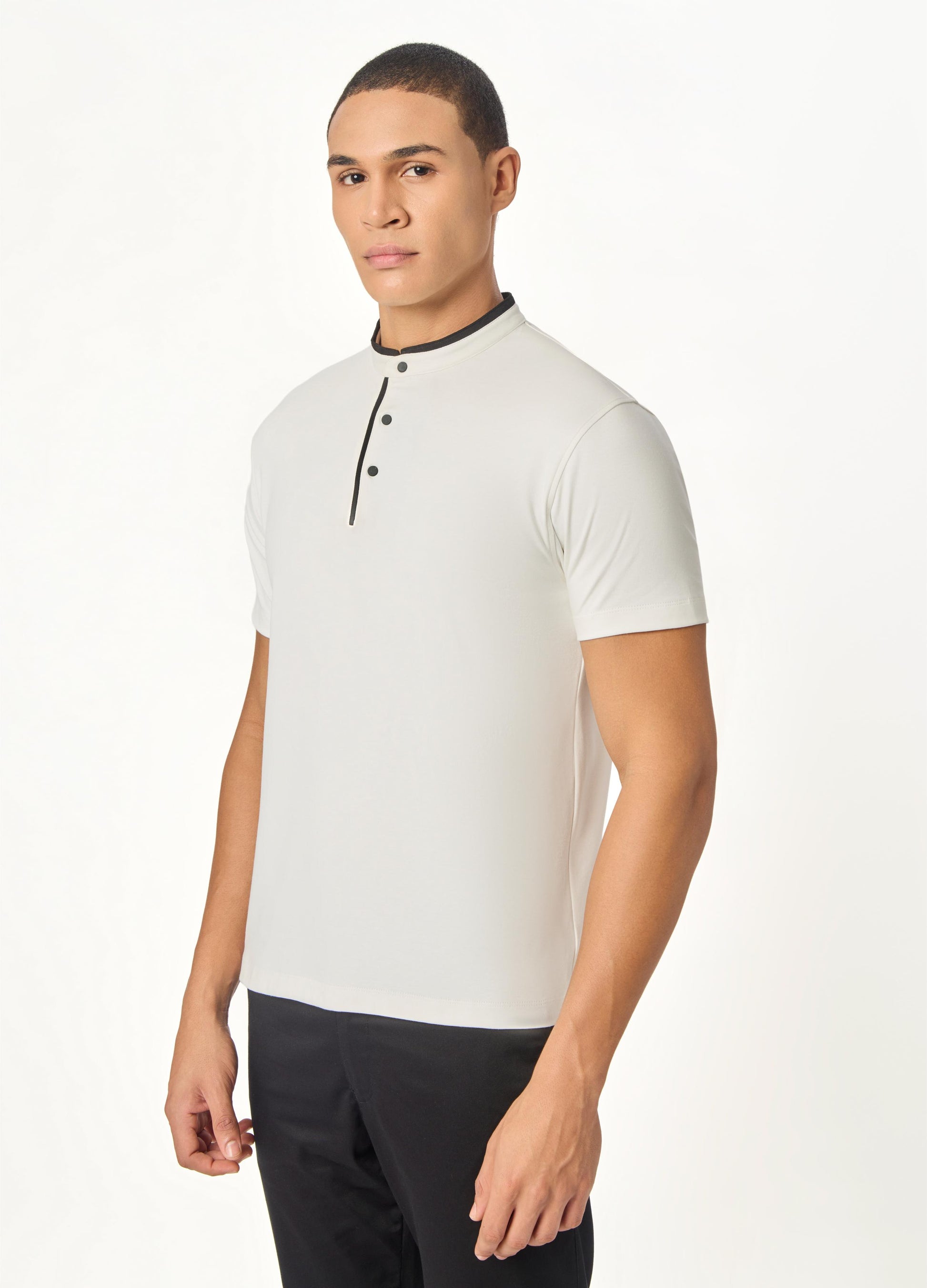 This bright white band collar shirt is crafted from our signature Lustrastrong™ cotton — a premium fabric engineered for exceptional smoothness and a silk-like shine.