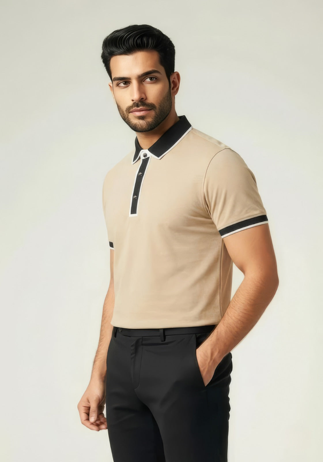 LustraCottonWoven from Lustrastrong™ cotton piqué, The Velvet Hour Liquid Polo — Oat features a soft oat-hued base accented with a sleek liquid-finish zipper at the placket. The subtle sheen of the zipper adds a contemporary, polished touch, while the breathable, luxuriously soft fabric ensures all-day comfort. With a tailored fit and precise stitching, this polo delivers structure and sophistication, ideal for the modern man who moves effortlessly from refined daywear to stylish evening ensembles.
