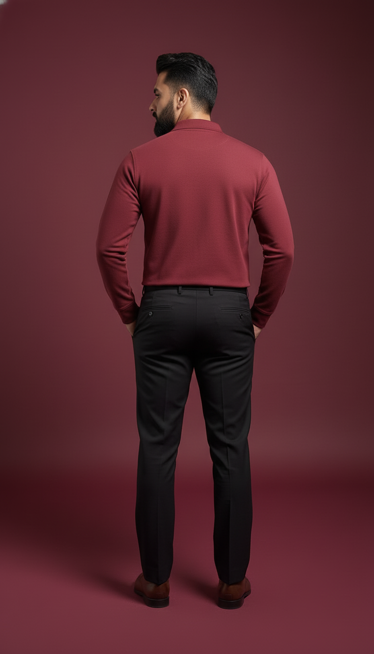 The Crimson Crest Luxe Full-Sleeve commands attention with its bold, deep crimson tone and premium, sculpted finish. Designed to enhance your natural silhouette, it offers a clean, tailored fit that blends confidence with sophistication. The luxe, smooth-touch fabric provides exceptional breathability and comfort, making it ideal for both day and evening wear. Precision-crafted stitching and refined detailing elevate its premium appeal, while the rich, vibrant hue adds a striking edge to any wardrobe. Versatile, modern, and undeniably stylish, this full-sleeve essential stands as a signature statement piece for those who prefer elegance with character.