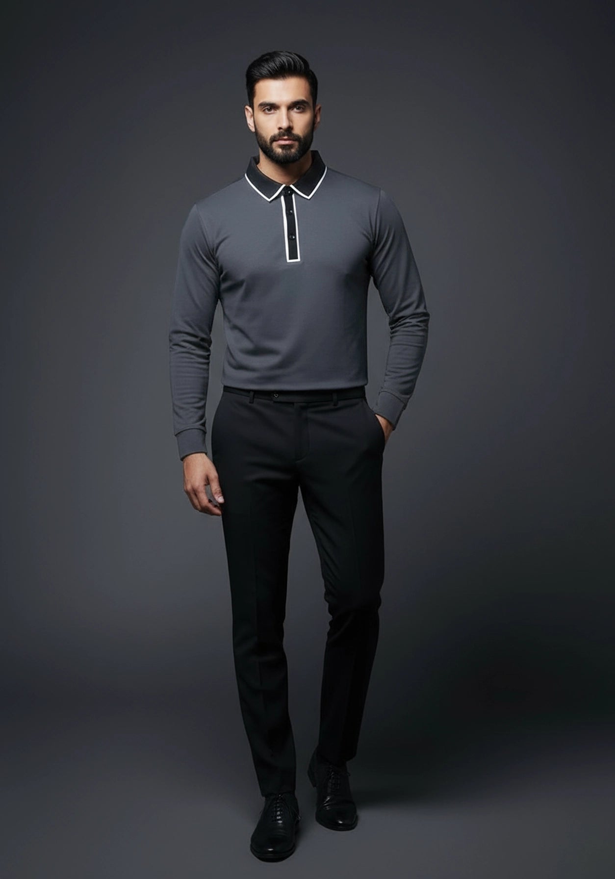 Woven from Lustrastrong™ cotton piqué, the Classic Full Sleeve Polo — Charcoal Grey defines subtle sophistication with a timeless, modern appeal. The deep charcoal tone exudes effortless elegance, offering a versatile foundation that pairs seamlessly with any look. Crafted from breathable piqué fabric with a smooth, refined hand feel, it delivers superior comfort and all-day ease. The tailored silhouette and meticulous detailing lend a sharp, confident edge. Designed for the modern man who values style without compromise, this polo transitions effortlessly from workdays to weekends with quiet refinement.
