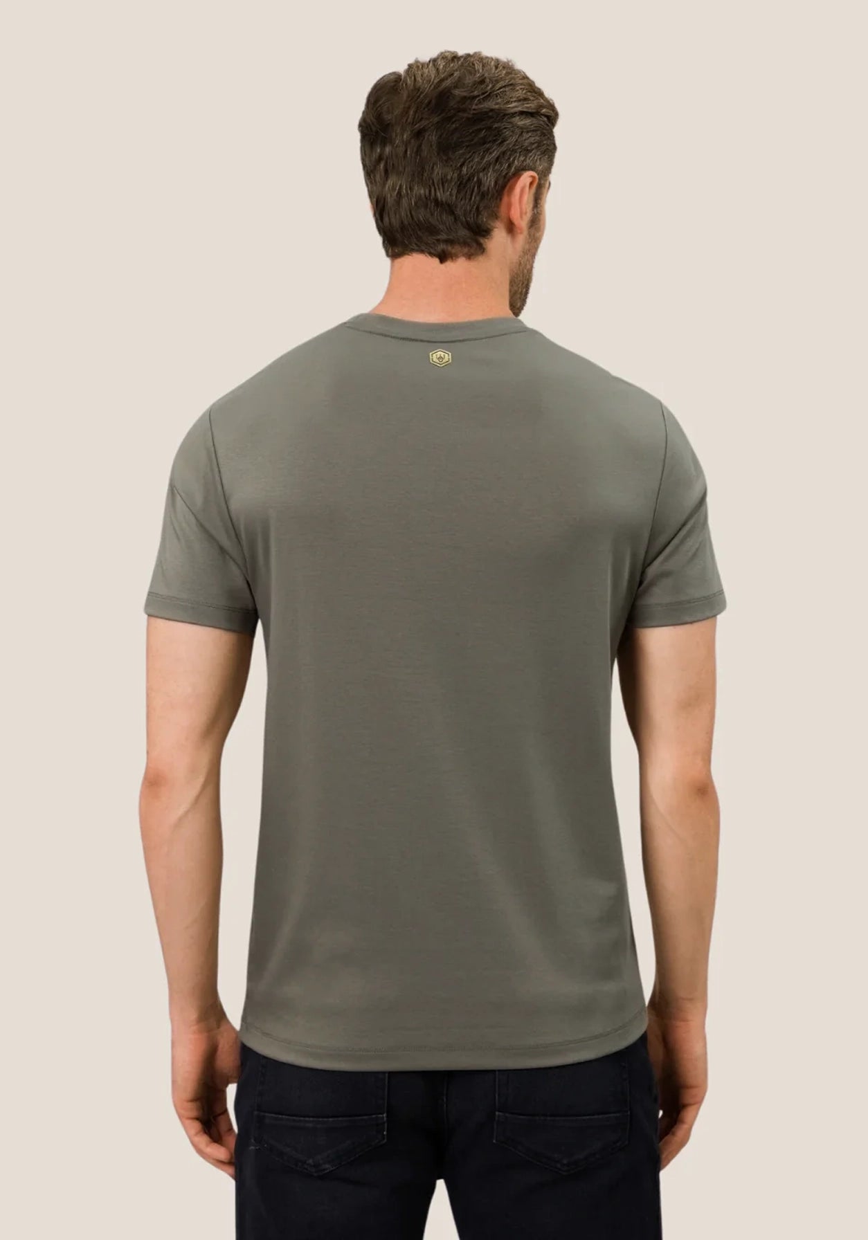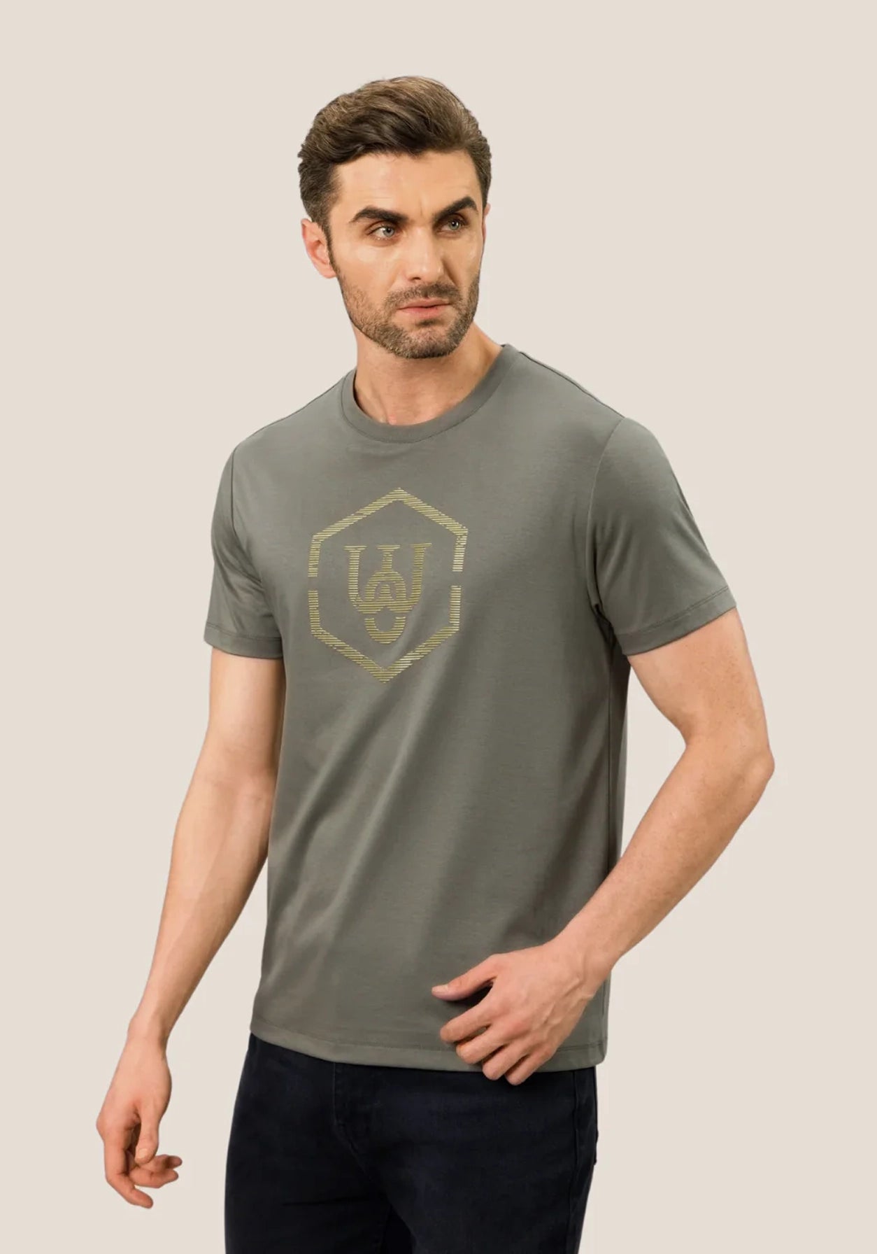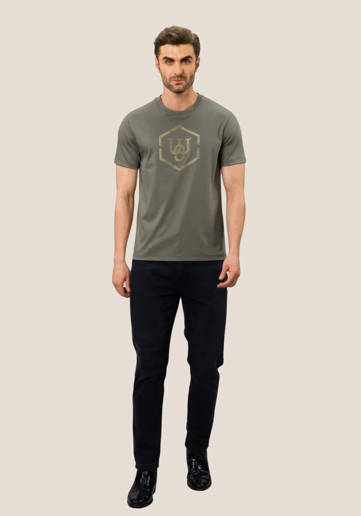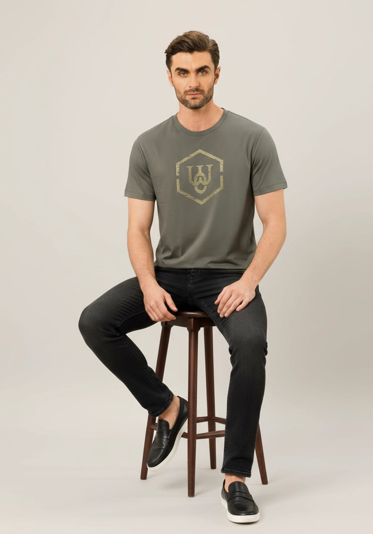 LustraCotton™Designed to stand out, the Outerworld Olive Luxury T-shirt — Dazzle Shift exemplifies cosmopolitan vibe. Its rich mercerized cotton offers a luxurious feel, while the radiant gold emblem, set against a vivid hue, delivers a luxe aesthetic. From the AW24 Party Drip collection, this Olive Crew Neck T-shirt is for those who let their refined taste speak louder than words.
