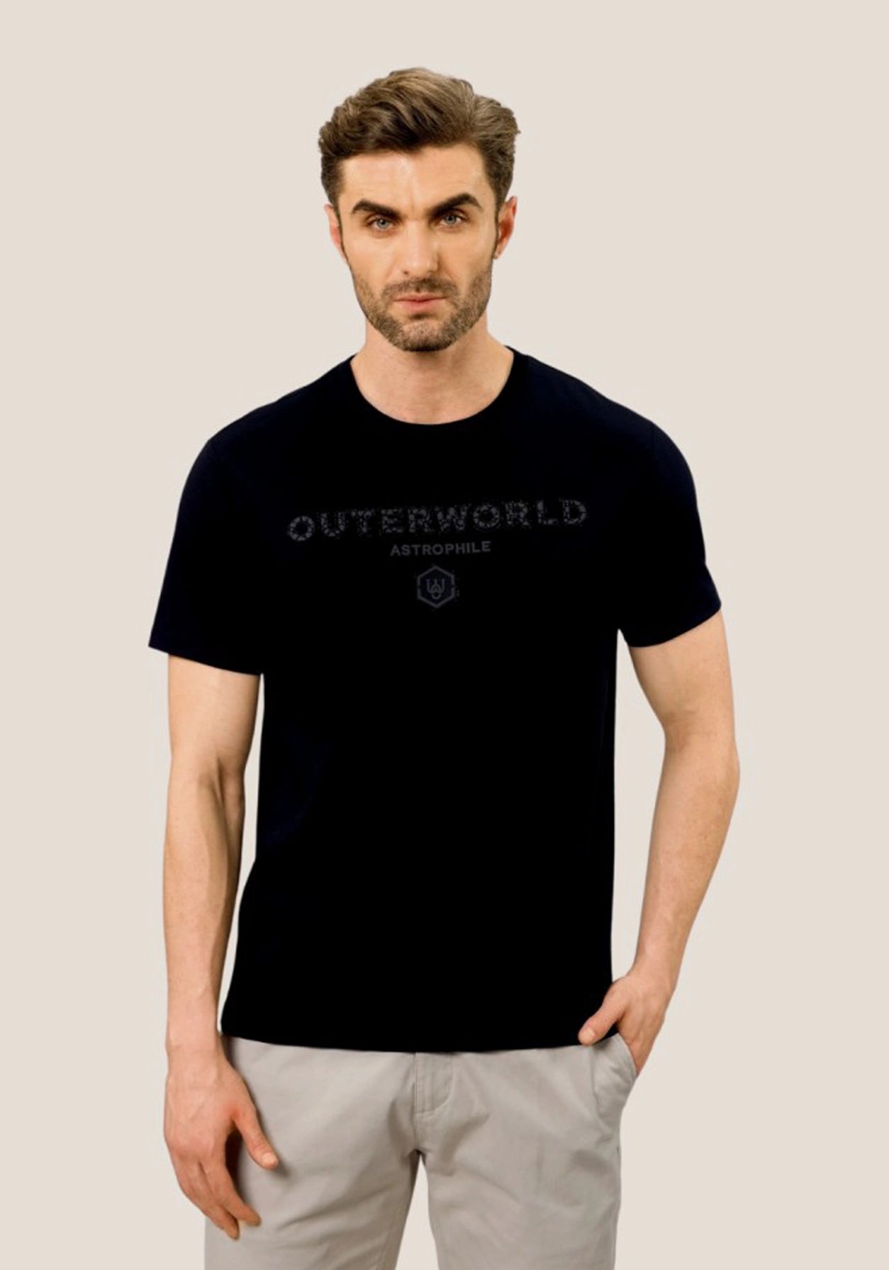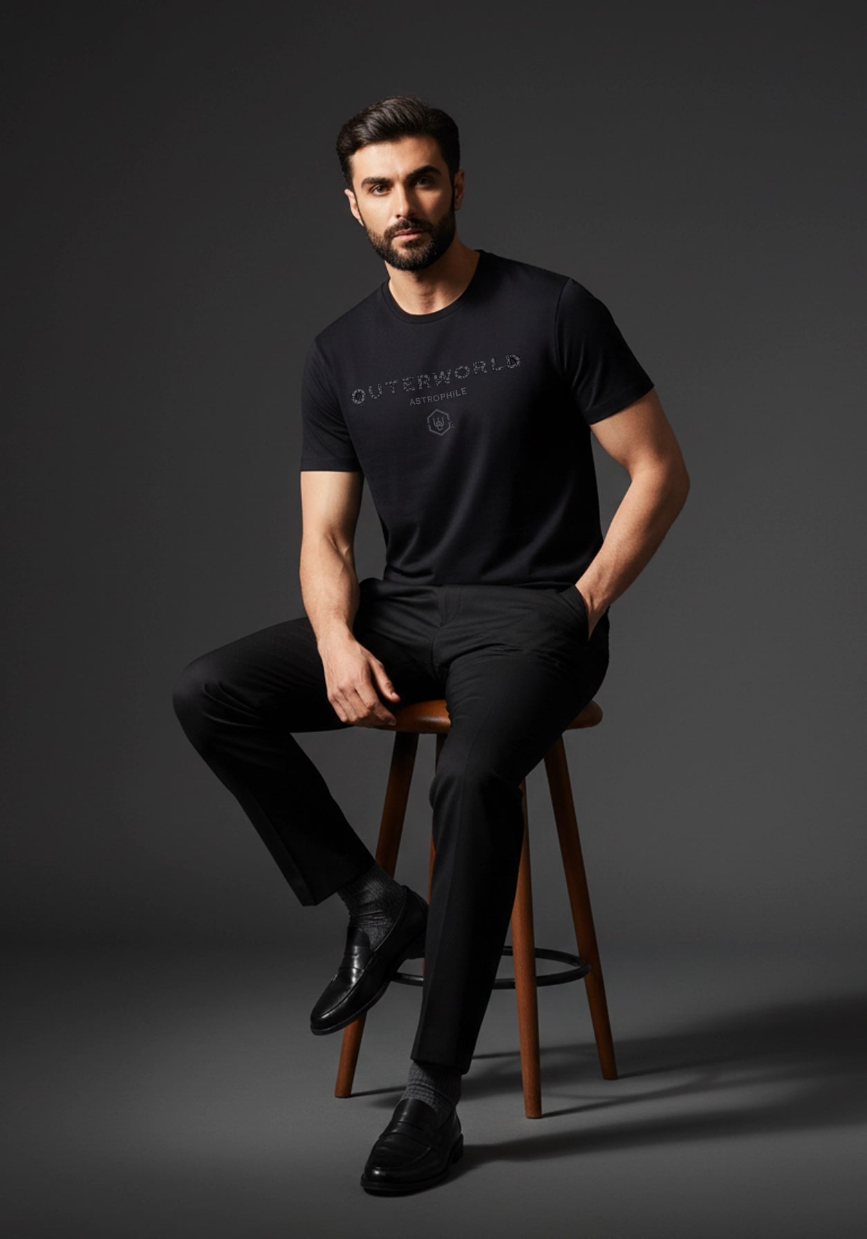 LustraCotton™Mindfully fashioned, the Outerworld Black Luxury T-shirt —Gilded Edge Luxury T-Shirt is made from sumptuous mercerized cotton for a lavish feel. The Outerworld emblem, adorned with sparkling diamante and a subtle black-on-black imprint, speaks of unparalleled attention to detail. Part of the AW24 Party Drip collection, this Black Crew Neck T-shirt is a statement piece, perfect for those who prefer anything but ordinary.