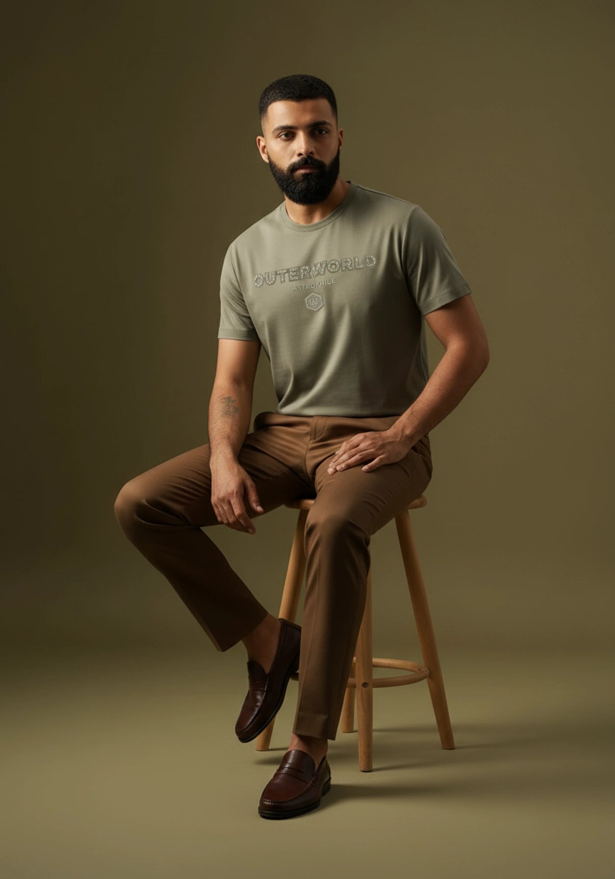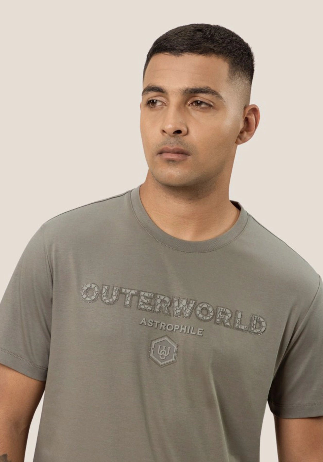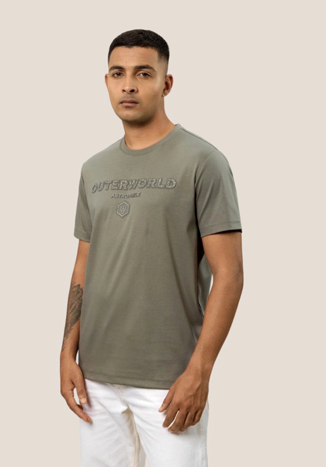 LustraCotton™Crafted from the most exquisite mercerized cotton, the Outerworld Olive Luxury T-shirt —Olive Drip exemplifies an elite sartorial sense. Featuring the Outerworld emblem accentuated with diamante and enriched by sophisticated tone-on-tone detail, it reflects a high level of craftsmanship. A centrepiece of the AW24 Party Drip collection, this Olive Crew Neck T-shirt is a must-have for true lovers of high-end luxury