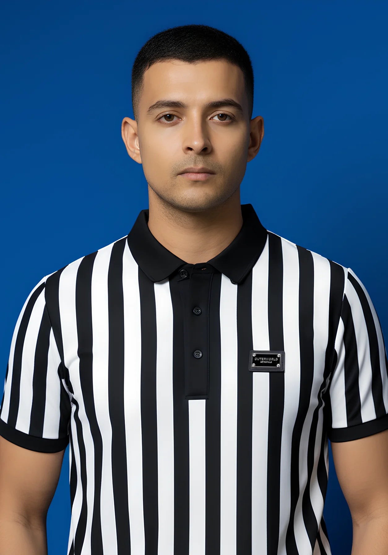 Elevate your party look with our premium striped polo, designed to make a bold statement.The sleek black-and-white vertical stripes offer a modern twist on classic patterns, creating a striking visual that’s perfect for night outs and upscale events. Featuring a contrast collar and refined button placket with our signature Outerworld button closure. This polo is crafted from high-quality fabric to ensure comfort and durability. The subtle leather and metal logo patch adds a touch of sophistication, enhancing its stylish appeal. With its eye-catching design and attention to detail, this polo is the ultimate choice for those who want to stand out with effortless style.