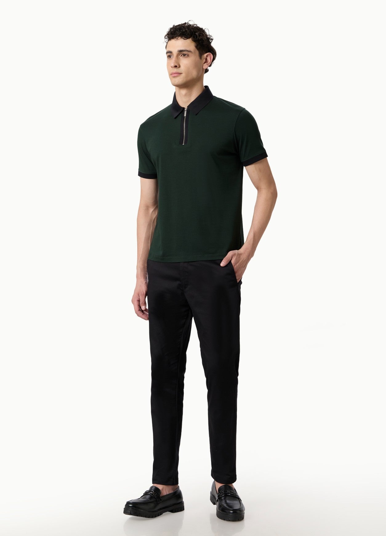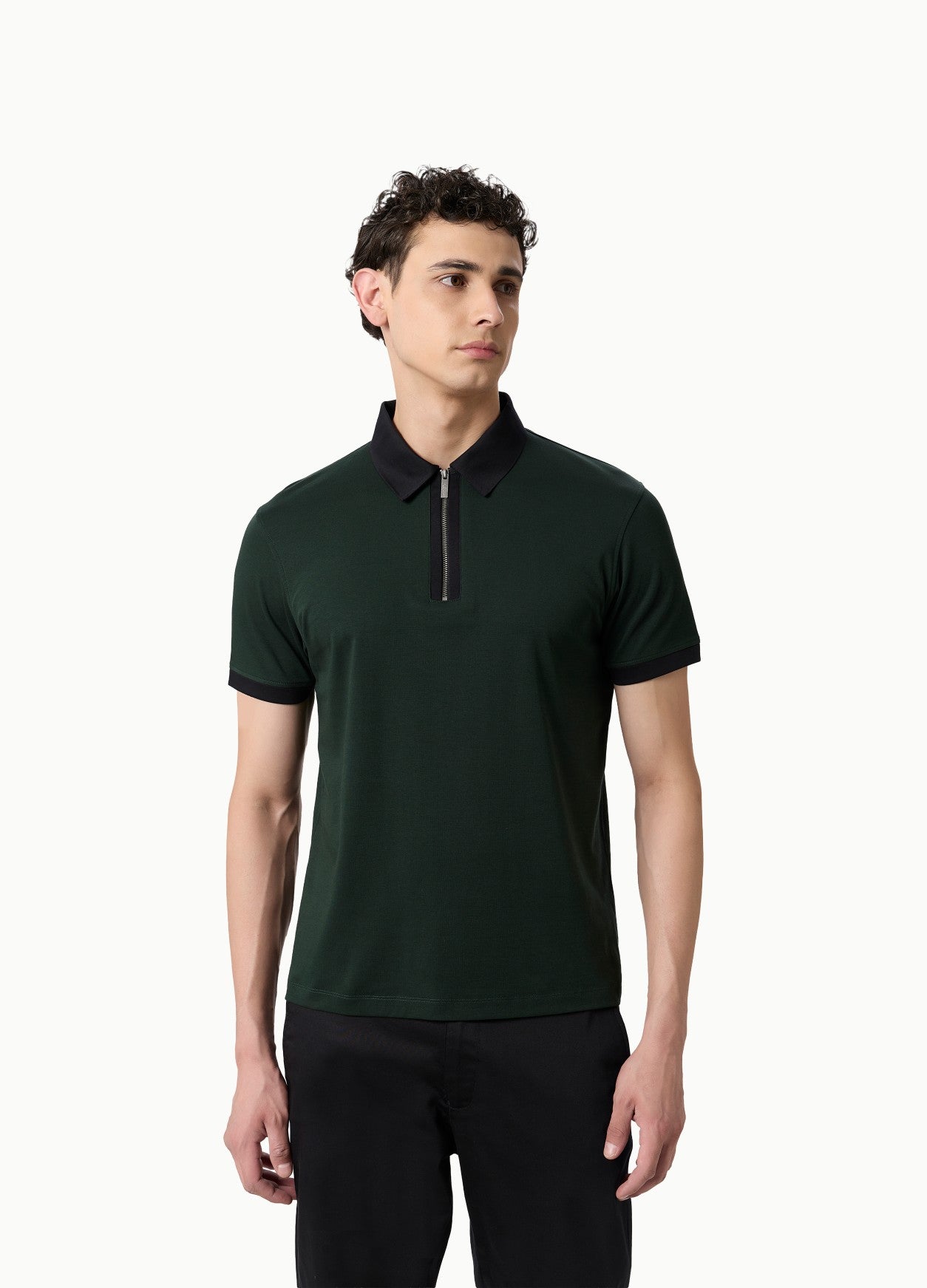 Heading Out. Effortlessly Ready.Rich in depth and understated in charm, the Bottle Green Zipper Polo is a modern classic. Woven from premium Lustrastrong™ cotton, it offers a liquid-soft feel, breathable ease, and a graceful drape that defines quiet luxury.