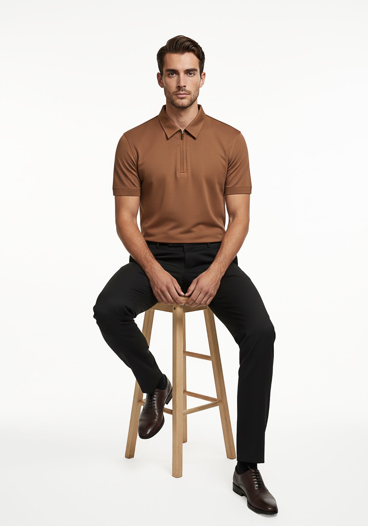 LustraCottonCrafted from premium LustraSoft cotton, this modern polo features a sleek zip-front closure and a structured collar that enhances its refined silhouette. The fabric offers a smooth hand feel with a subtle sheen, while precision stitching ensures lasting durability. Designed in a comfortable tailored fit, it delivers effortless sophistication for warm summer days.