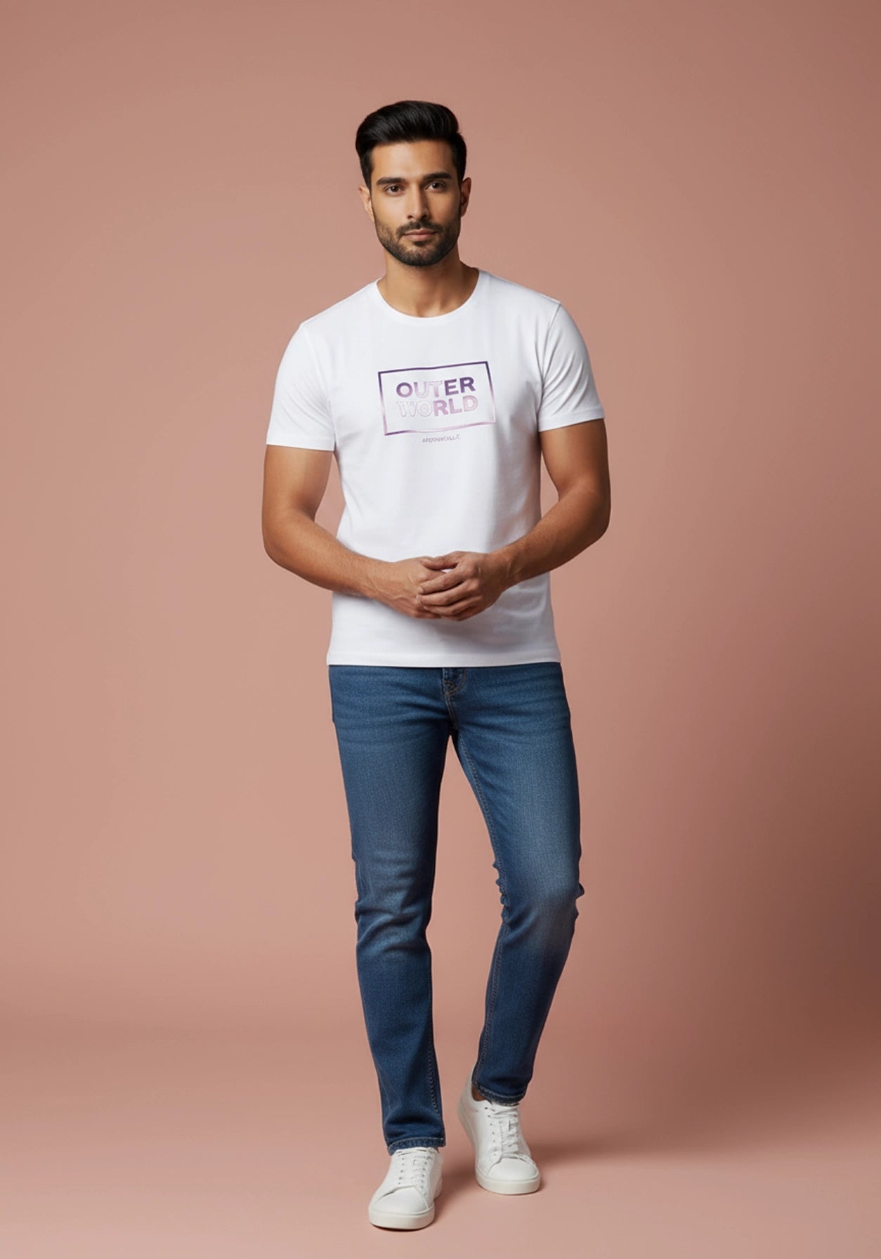 Step into the future of fashion with the Outerworld Luxury T-shirt — Rose Gold Aura,featuring a bold and dynamic white 3D logo design. Crafted from the finest mercerized cotton, this T-shirt offers a luxurious feel, exceptional softness, and a tailored fit that’s both comfortable and stylish. From the AW24 Party Drip Collection,