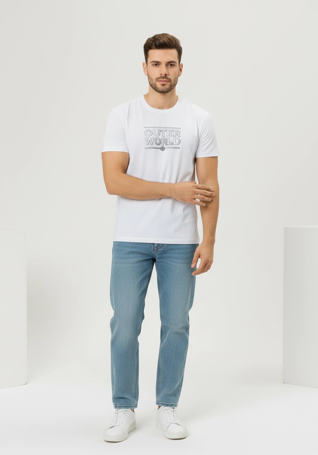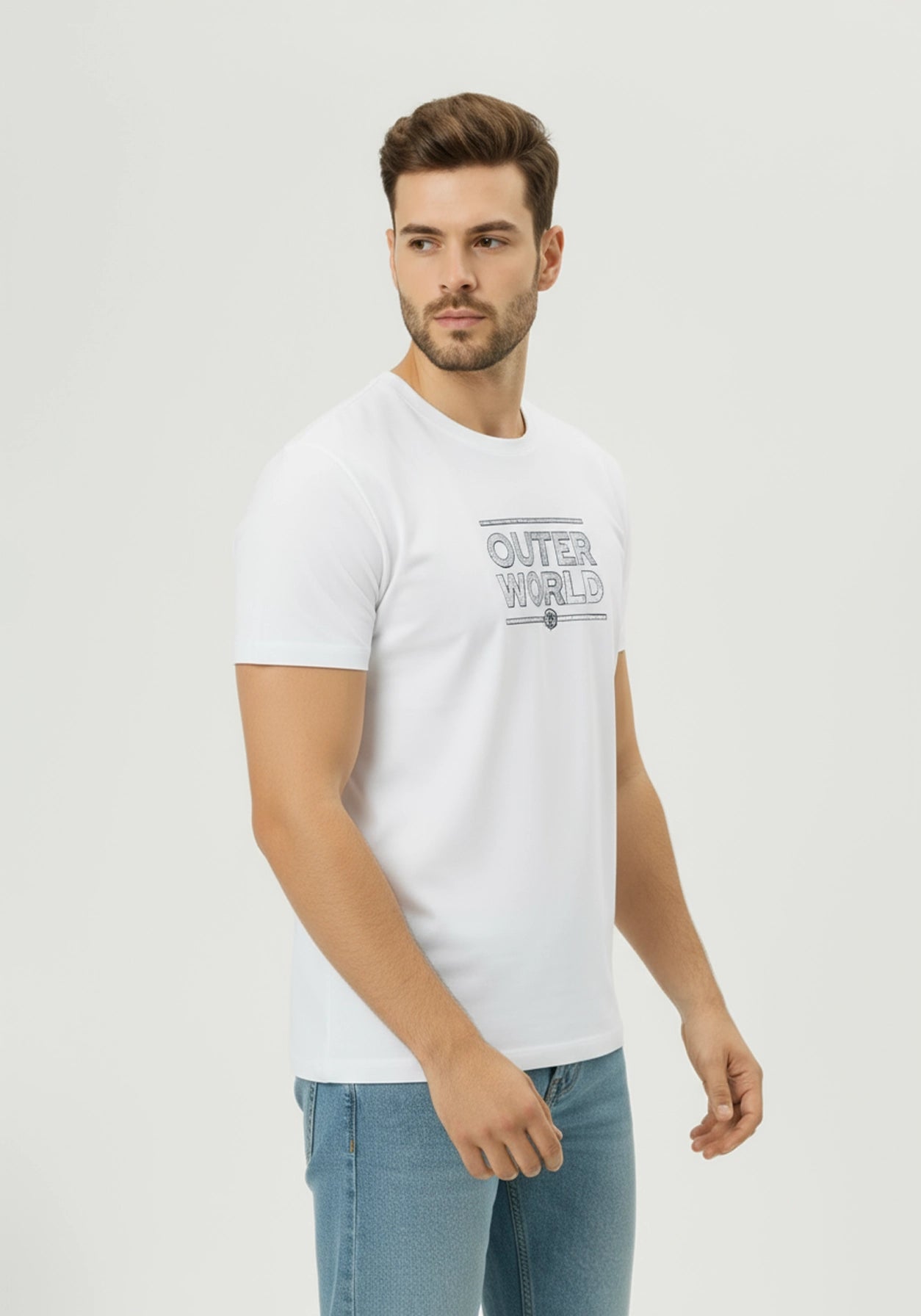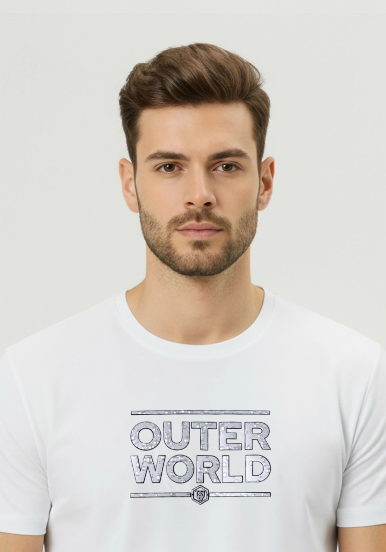 Elevate your wardrobe with the Outerworld White Luxury T-shirt — Silver Halo crafted from the finest mercerized cotton for a truly luxurious feel. The Outerworld logo, masterfully etched, boasts a smooth 3d texture using advanced printing techniques and stands out against the clean white canvas. From the AW24 Party Drip collection, this White Crew Neck T-shirt is for individuals who appreciate impeccable craftsmanship while delivering a fashion flex.