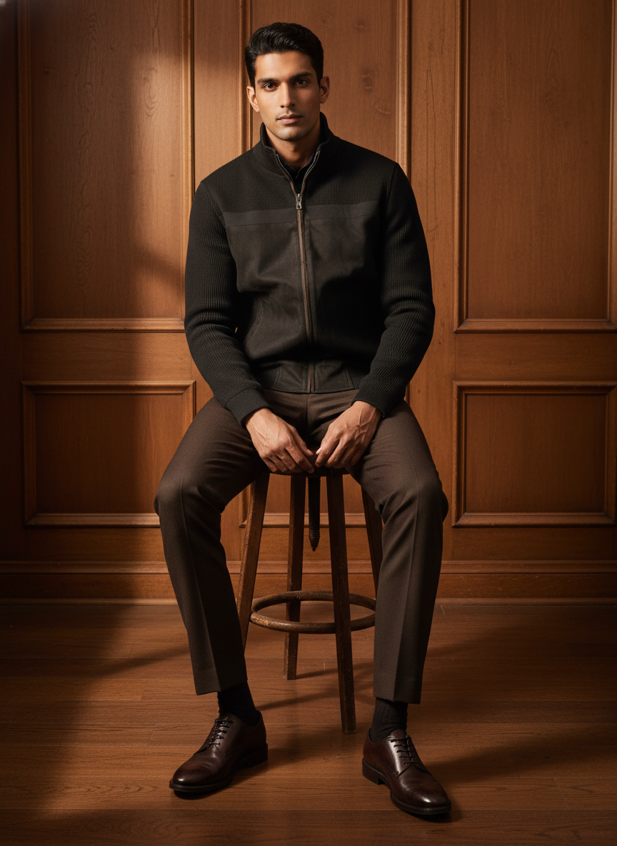 The Marquis Black Luxe Edition embodies the pinnacle of refined sophistication, crafted for the modern gentleman who values elegance with an authoritative edge. Its deep black finish, sculpted silhouette, and premium fabric blend create a commanding yet timeless aesthetic. Meticulous stitching, a polished zip closure, and structured paneling highlight master craftsmanship. Lightweight yet resilient, it offers effortless comfort across seasons. Whether styled for upscale evenings or elevated daily wear, this jacket delivers quiet power and unmistakable presence. The Marquis Black Luxe Edition stands as a signature piece of luxury—bold, refined, and crafted to perfection.